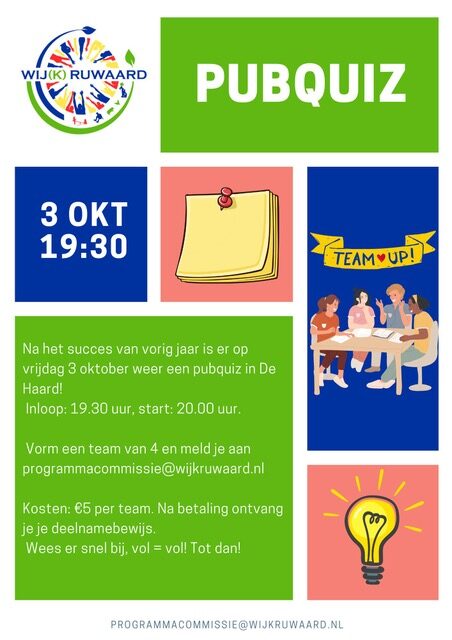 Je kunt je nu al inschrijven voor de pubquiz op 3 oktober