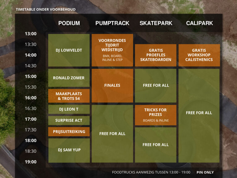 Van 13:00 tot 19:00 uur beleef je een unieke mix van muziek, sport, food en community – en het mooiste? Toegang is helemaal gratis!
