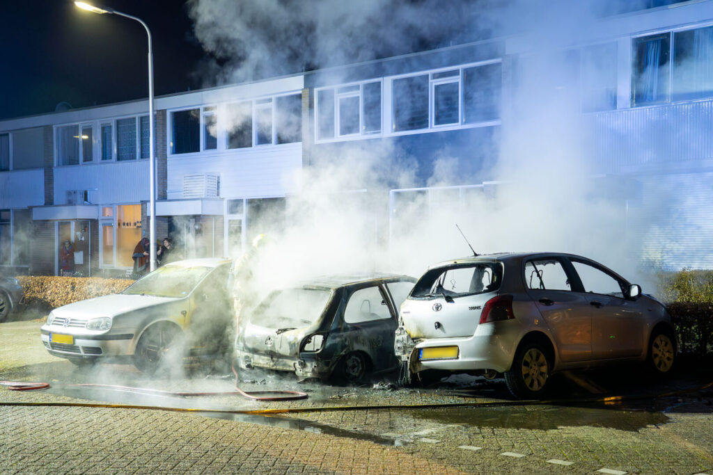 In de Verdistraat in de ruwaard zijn zaterdagavond 24 januari drie auto’s verwoest door een felle brand. De brand werd rond 20.20 uur bij de brandweer gemeld maar toen die even later arriveerde was de brand zo fel dat de auto’s niet meer te redden waren.