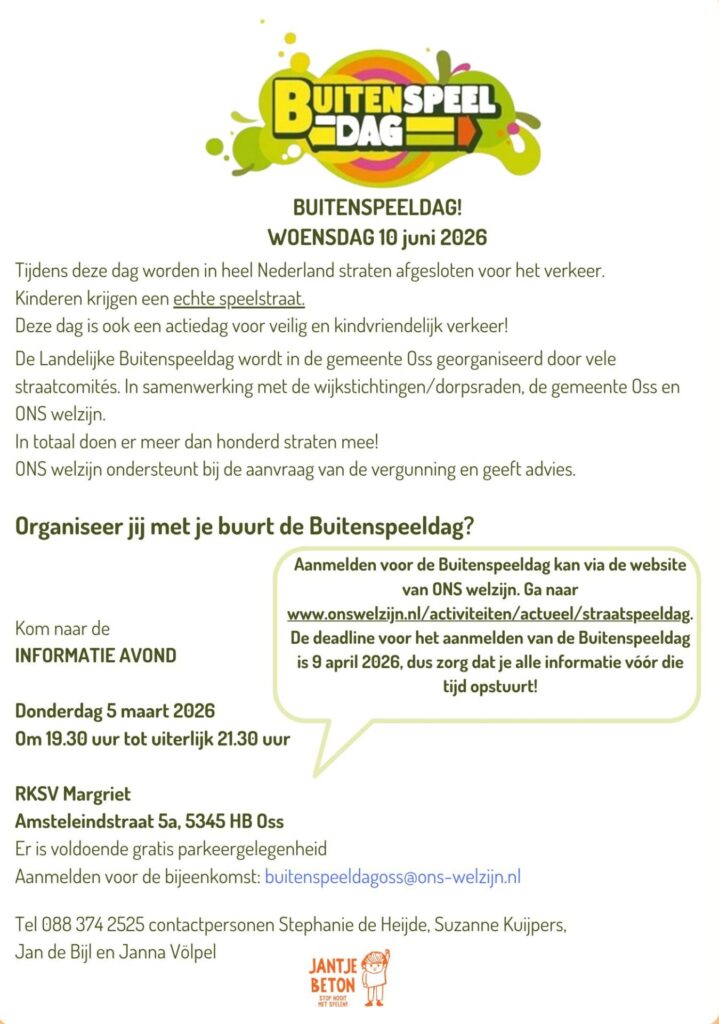 Per mail aanmelden voor de bijeenkomst: buitenspeeldagoss@ons-welzijn.nl