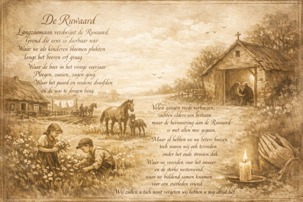 De redactie Wijk Ruwaard heeft dit gedicht ontvangen met verzoek het op de website te plaatsen in de hoop dat iemand het herkent en ons kan doorgeven wie de schrijver van dit gedicht is.