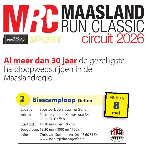 informatieve flyer over het Maasland Run Classics circuit 2026 downloaden. En daar vind je ook alle overige informatie, uitslagen en het tussenklassement van het circuit.