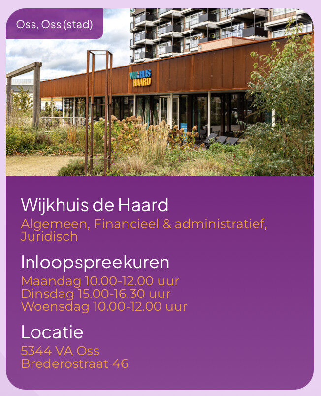In Wijkhuis de Haard, Brederostraat 46, 5344 VB Oss.